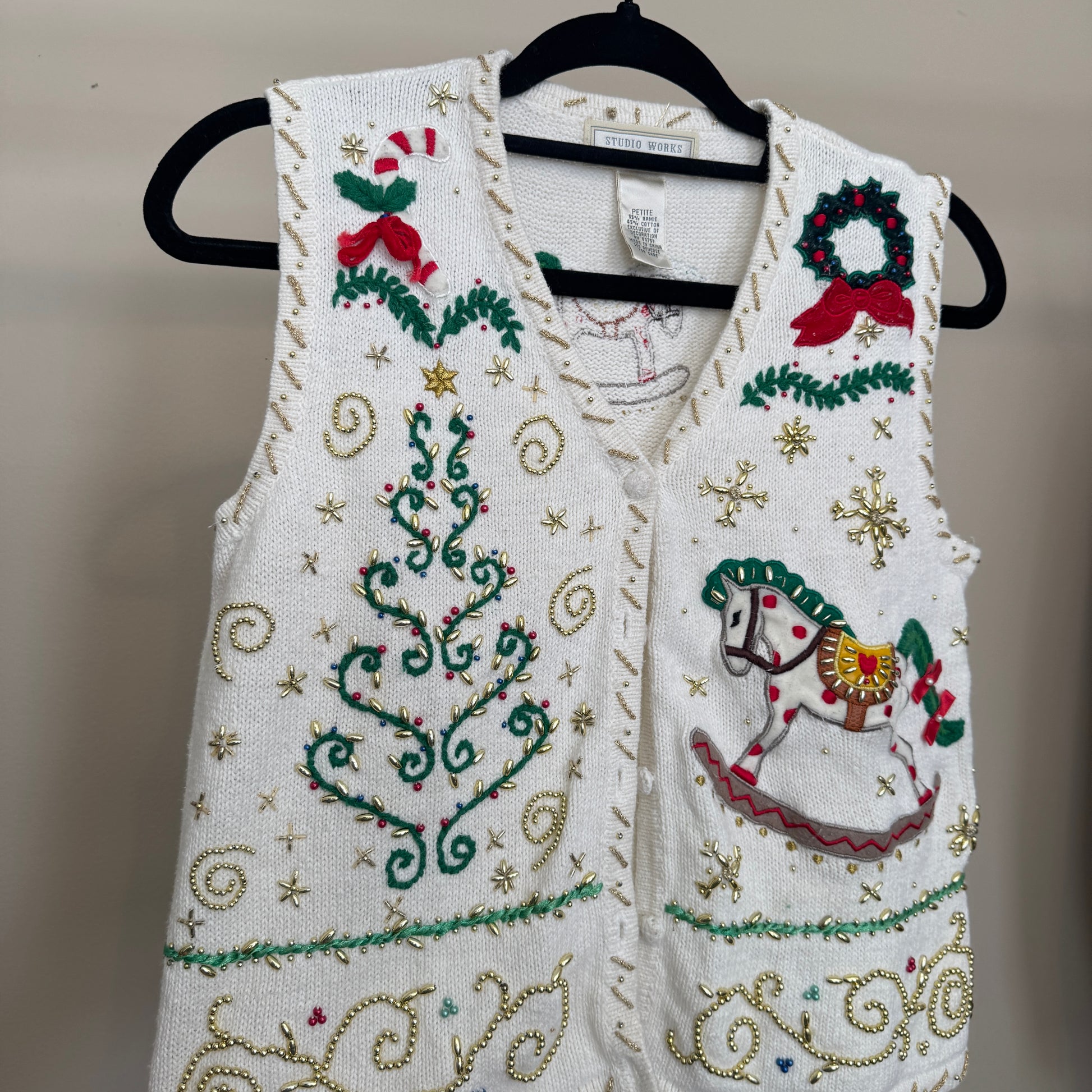 Vintage White Christmas & Rocking Horse Sweater Vest (S)